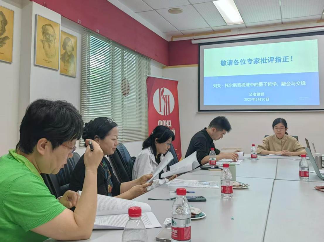 在开题汇报中,公冶健哲博士后以托尔斯泰对墨子哲学的接受与译介为切入点,先后了阐释了本课题的选题缘由,梳理了与之相关的前期研究成果,介绍了本课题的基本框架,并在此基础上提出了进一步的研究展望。专家组成员围绕本研究计划中的关键概念、理论范式以及各章节的逻辑关系等核心问题,提出了极具针对性和建设性的建议,为课题后续的顺利开展提供了坚实的保障。