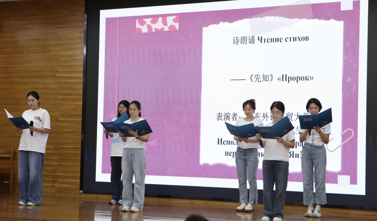 本届“俄语日”活动由我院俄语语言文学专业博士生赵阳洋和来自莫斯科国立语言大学的俄罗斯留学生阿琳娜联合主持。各院校学生带来了包括舞蹈、诗朗诵、戏剧、合唱等形式多样的文艺节目,共同庆祝中俄文化年的丰硕成果,也展现了两国文化在交流互鉴中的新活力。至此,2025年“俄语日”活动圆满落下帷幕。