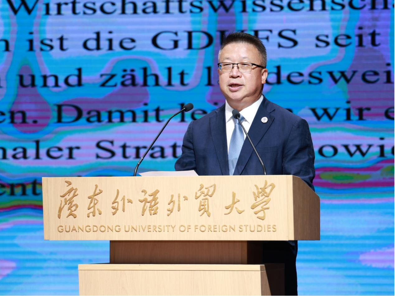 德国学术交流中心(DAAD)北京代表处主任欧阳乐在致辞中回顾了双方合作的渊源。自1978年支持首位德国讲师驻校以来,广外已成为DAAD在华南地区的核心合作伙伴。他高度肯定广外德语专业的创新举措,尤其是新增的“德语+国际经济与贸易”双学士学位项目。他指出,这为培养复合型人才树立了标杆,并表示DAAD将持续支持广外拓展师生交流、科研合作,助力其成为中德学术交流的灯塔。