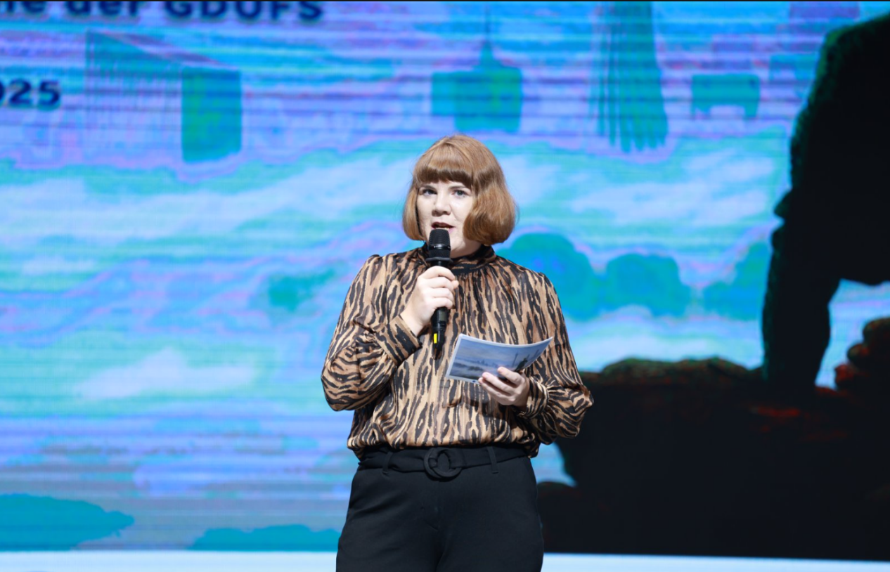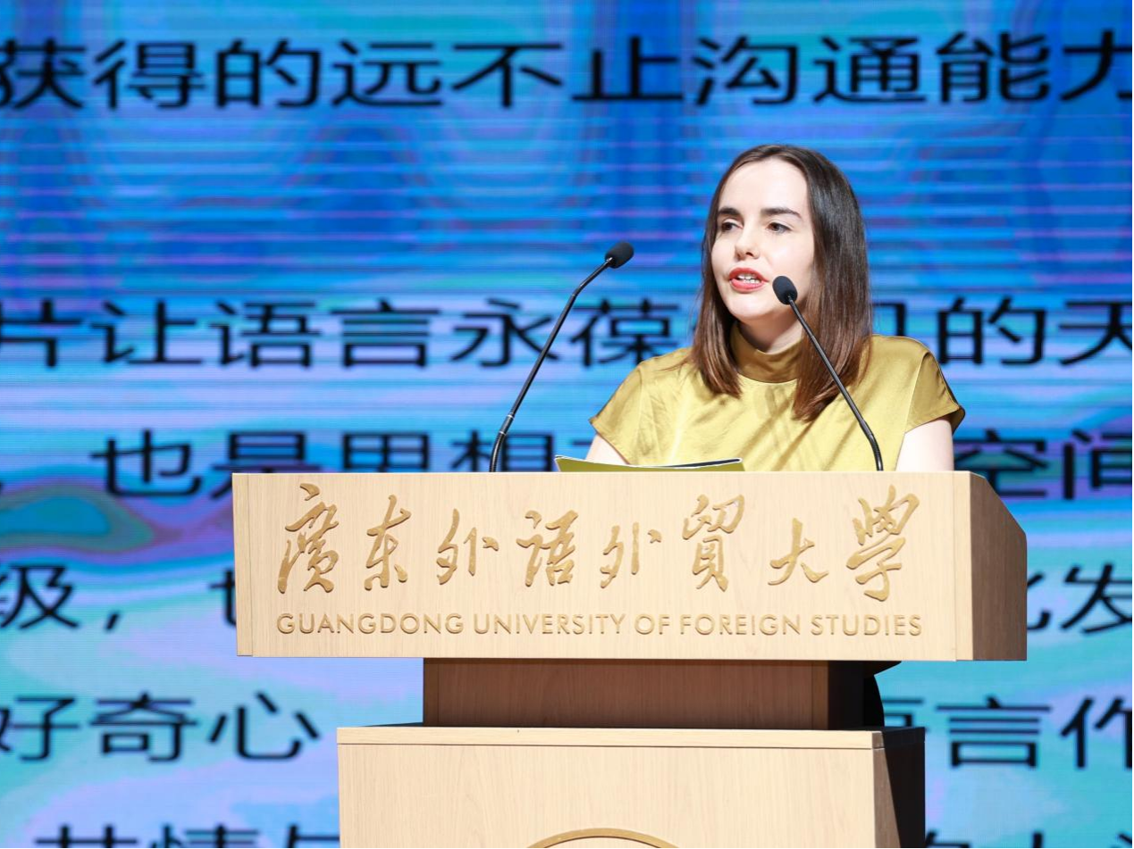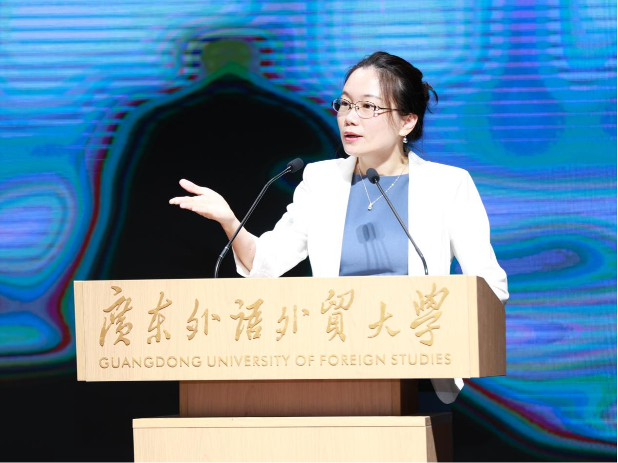 歌德学院德语教学合作处主任杨佳芝在讲话中强调了语言学习的深层意义。她指出,掌握德语,不仅是习得语法词汇,更是学会用他人视角认知世界。她回顾了与广外十年合作历程,从教师培养到学术会议,双方始终致力于让语言永葆生机。面对数字化浪潮,她特别指出,教育的核心永远是人,思想的碰撞、心与心的对话,才是语言真正的生命力。