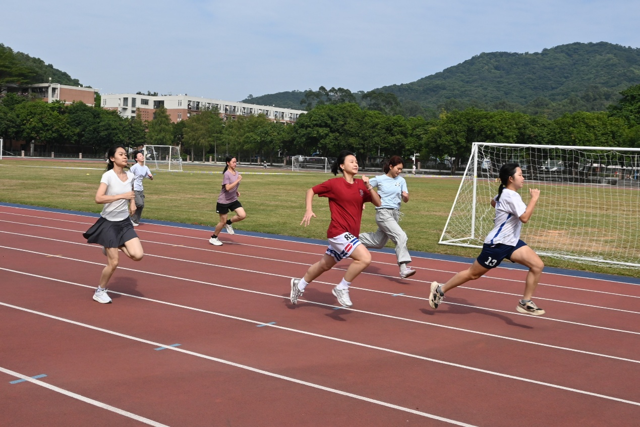 上午9:30分,女子100米比赛开始,打响了院运会的第一枪。选手们不畏秋凉,专注热身,如箭在弦。最终,俄语2301邱静怡同学勇夺桂冠,俄双2401李诗渟同学和葡语2501班李林珂同学分别获得了第二名和第三名的好成绩。