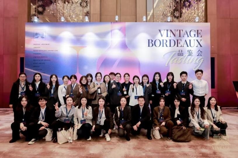 本网讯 2025年11月24日,中法葡萄酒行业Vintage Bordeaux酒会在广州瑰丽酒店举行。广东外语外贸大学西方语言文化学院法语系师生受邀为此次品鉴会提供口译服务,以专业的翻译服务为法国酒庄代表团与中国品酒界搭建起高