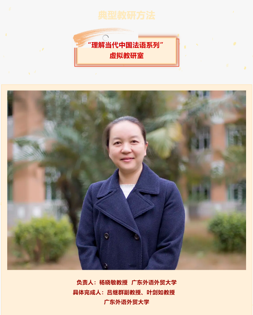 12月10日,教育部2025年度虚拟教研室试点建设典型名单正式公布。由广东外语外贸大学杨晓敏教授负责的“理解当代中国法语系列”虚拟教研室成功入选,凭借教研案例“数智赋能,头雁领航,构建国际传播人才培养教学新生态”入选典型教研方法名单。