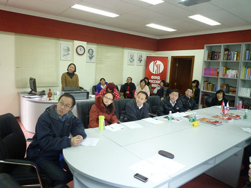 本网讯 12月30日下午两点, 广东外语外贸大学跨文化研究博士论坛本学年度最后一次圆桌研讨会在西语学院俄语中心召开。校文科基地道德研究与心理研究所所长,博士生导师杨韶刚教授、研究生处培养办植仲培老师,以及西语学院、高翻学院、外国文学与文化中心、文科基地的教师、博士生参加了研讨会,会议由论坛博士委员会主席,法语系博士林凡主持。