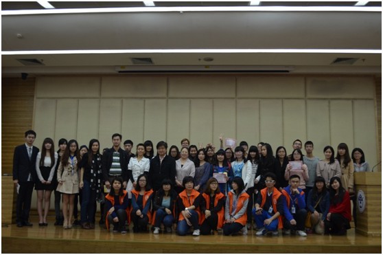 本网讯 4月11日晚七点,广外西语学院第七届欧罗巴文化节之影视配音大赛在图书馆负一层拉开帷幕。出席本次大赛的领导及嘉宾有:校团委余海波老师,商英学院团委书记陈娓老师,新闻学院团委书记高杰强老师,西语学院党委书记方华老师,西语学院党委副书记郝建萍老师,西语学院团委书记张璇老师,西语学院辅导员陈静老师,以及西语学院辅导员李媛老师。