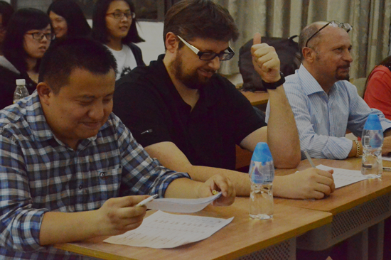 外教评委认真聆听