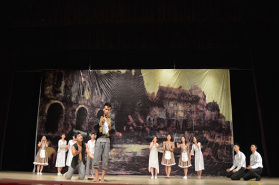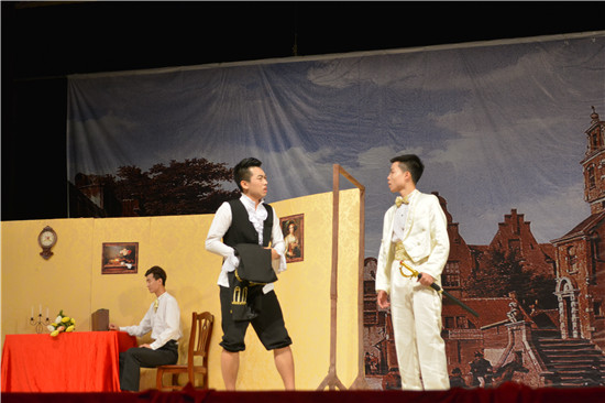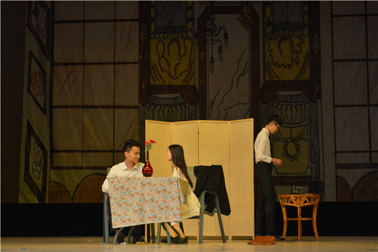 葡萄牙语剧组的《两个丈夫》,主打爱情剧情,讲述了女主人公佛洛尔面临的艰苦的爱情抉择。唯美的画面和浪漫的音乐令人沉醉,漂亮俊美的葡语演员们带我们走进一个少女的内心,展现追求自由爱情的精神之可贵。获得了观众的认可和引发了同学们对爱情的思考。
