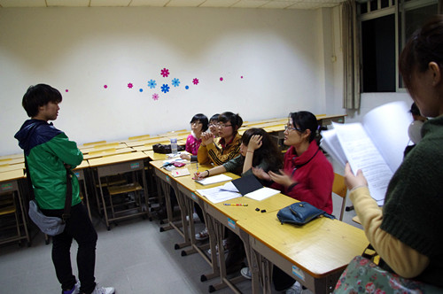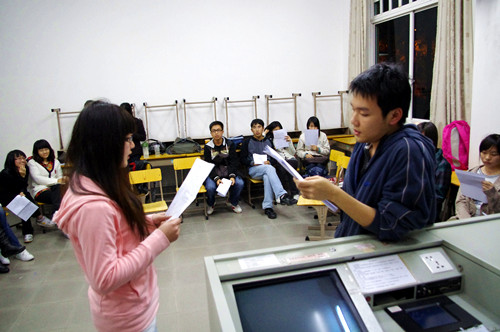 本网讯 欧罗巴文化节是西方语言文化学院的传统,每年都会举行一系列的活动,而戏剧大赛是欧罗巴文化节的重头戏,它会给每年的欧罗巴增添上浓墨重彩的一笔。从写剧本,选导演,选演员,都引起了每个语系同学们的关注。与往年一样,今年的剧组的演员配音选拔赛于三月三日在四教如期举行。